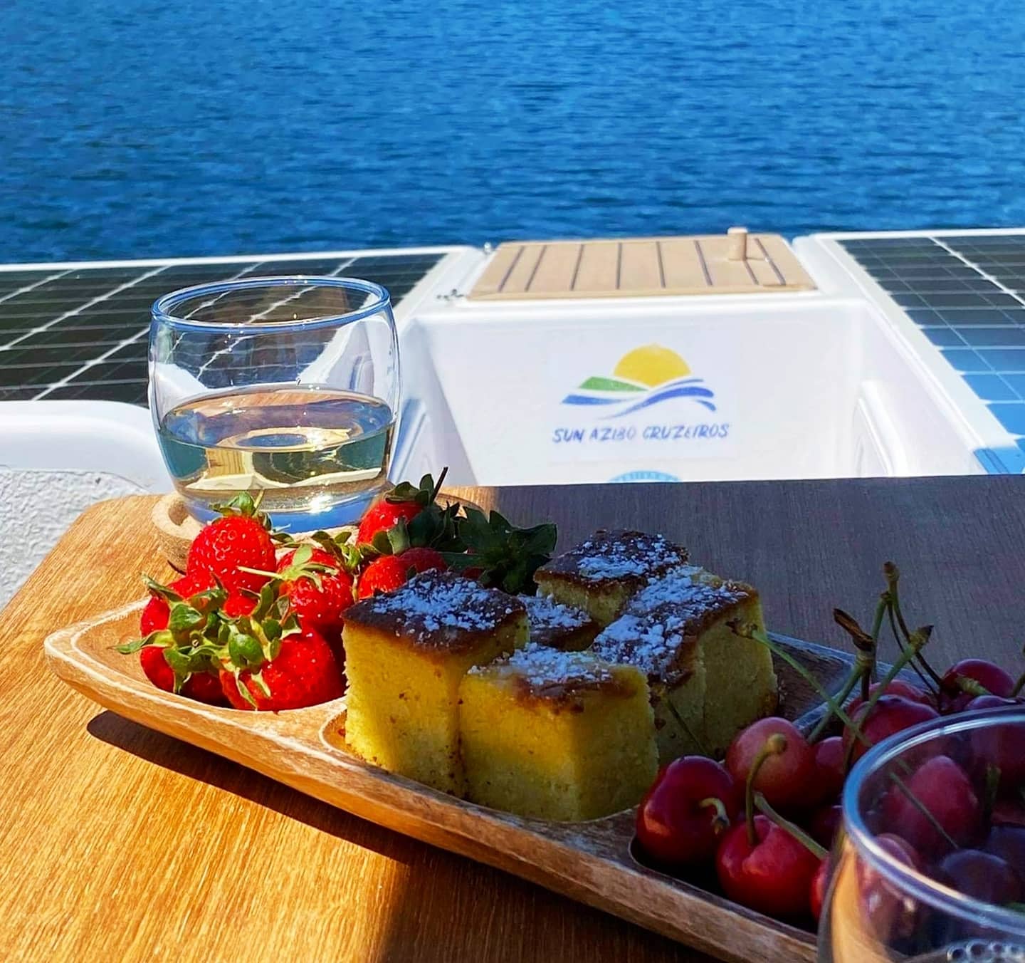 Posteriormente para restabelecer os seus níveis de adrenalina embarque no Cais da Albufeira do Azibo e relaxe numa viagem fantástica, de perfeita comunhão com a natureza, visita ao lado mais selvagem e natural desta albufeira a bordo da nossa embarcação ecológica, movida a energia solar, 0% poluente e 100% silenciosa. Poderá ainda mergulhar nestas águas límpidas e tépidas e, de seguida saborear um aperitivo e uma bebida servidos a bordo.